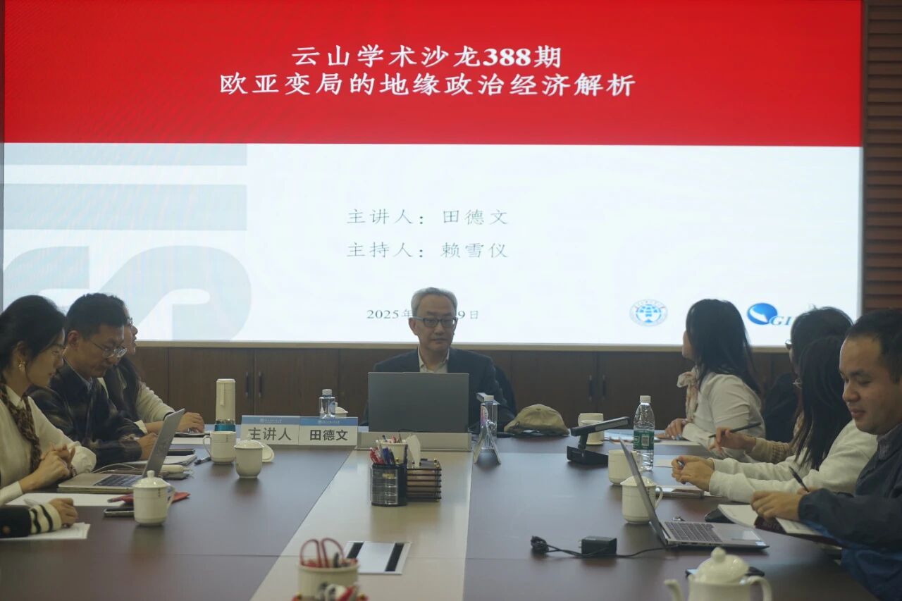 11月19日,我院成功举办云山学术沙龙第388期,邀请中国社会科学院俄欧亚所研究员田德文教授主讲,主题为“欧亚变局的地缘政治经济解析”。讲座由我院赖雪仪副教授主持,我院师生共同参与讲座。田德文教授指出,在当前复杂多变的全球格局下,有必要从地缘政治经济学的视角审视欧亚大陆的深刻变局,并强调把握演变主线的重要性。他围绕三个关键变量展开分析:中美战略博弈的持续演进、体系的内部凝聚力,以及欧亚大陆当前的地缘政...