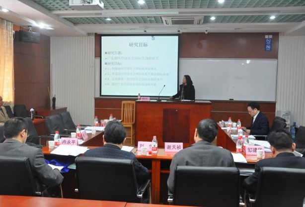 On Dec. 25th, the Project Conclusion Defense Meeting for the Human and Social Science Research Projects for Universities of Guangdong, which is organized by Guangdong Education Department and Scientific Department of GDUFS, was held in Room B107 in No. 6 Teaching Building on North Campus of GDUFS. The major project undertaken by GRIIS, Study on the International Strategy for the Economic and Social Development of Guangdong, passed the defense and successfully concluded. Prof. Li Qing, secretary general of GRIIS and the Project leader, attended the meeting and made in-depth communication with the experts.