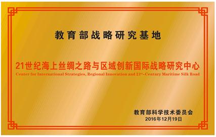 ● 2017年5月,教育部科技委战略研究基地(21世纪海上丝绸之路与区域创新国际战略研究中心)揭牌。