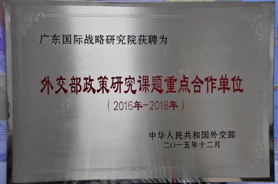 ● 2016年1月,续聘外交部政策研究重点合作单位