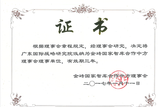 ● 2017年1月,当选2017年金砖国家智库中方理事会成员