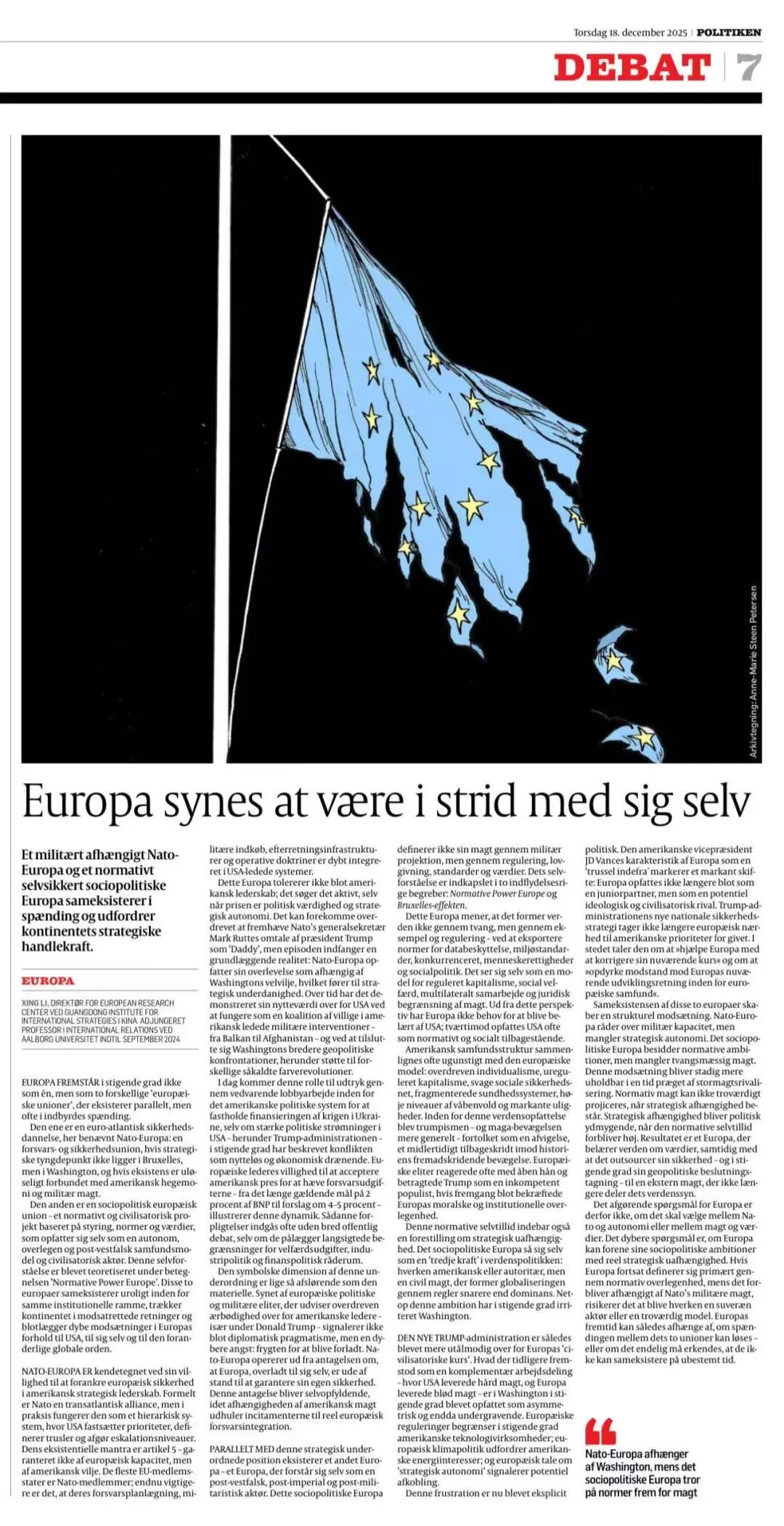 近日,我院云山领军学者李形教授在丹麦重要的主流媒体《政治报》(Politiken)中发表题为《Europa synes at være i strid med sig selv》的文章。