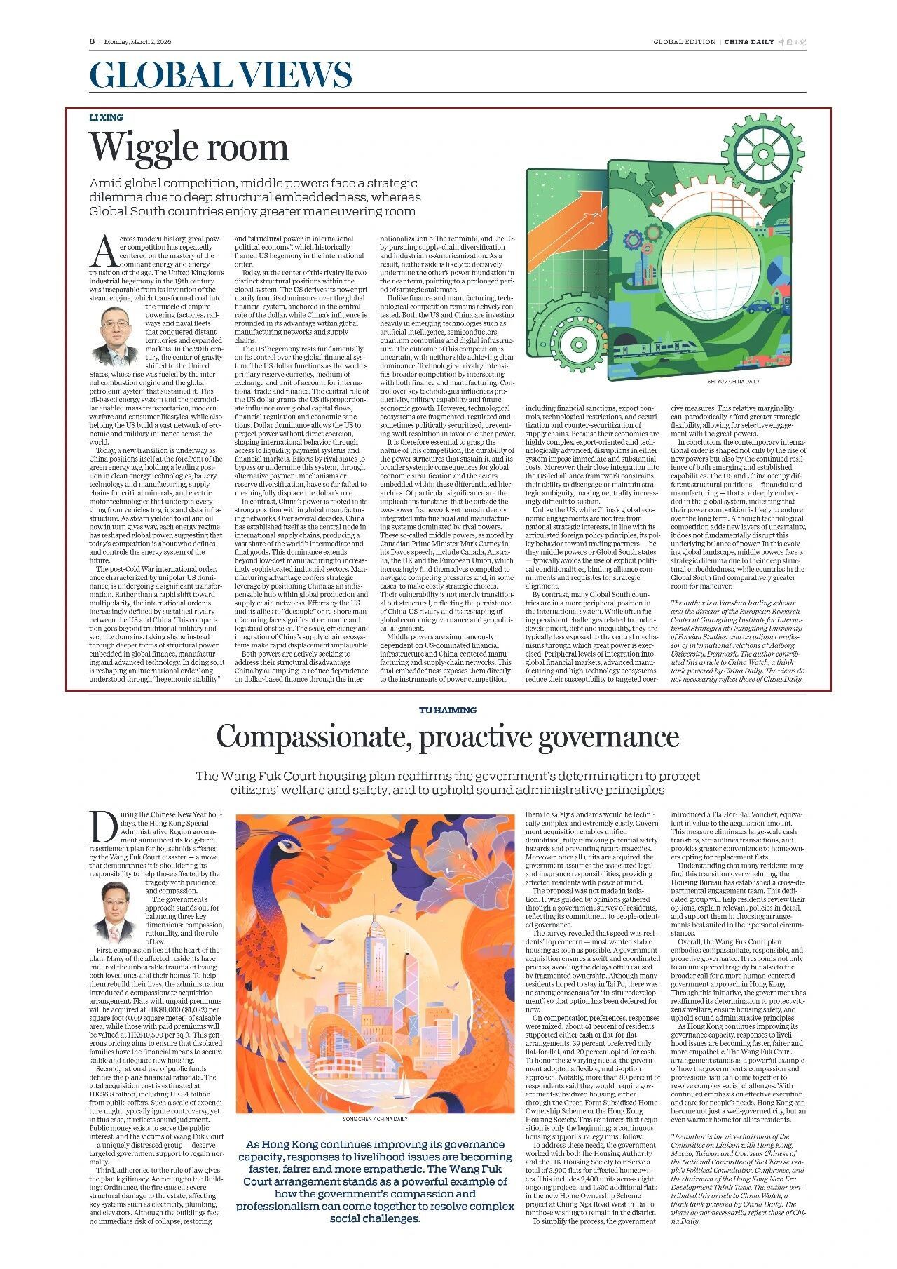 在大国竞争日益激烈之际,中等强国由于其深层的结构性嵌入而面临战略困境,相比之下,全球南方国家则拥有较大的运筹空间。近日,我院云山领军学者李形教授在China Daily上发表了题为“Wiggle room”的文章。