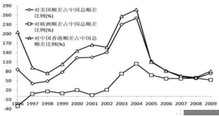 图3中国贸易顺差的主要来源地各自所占总顺差比例