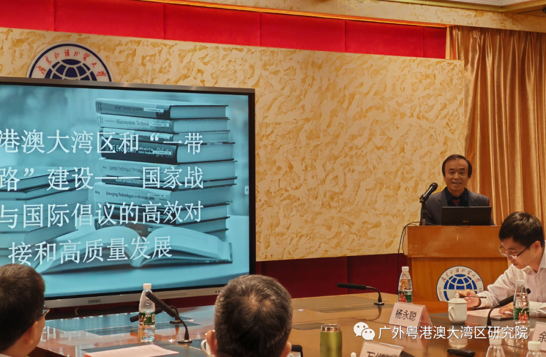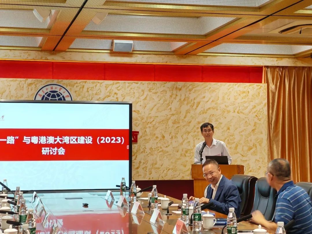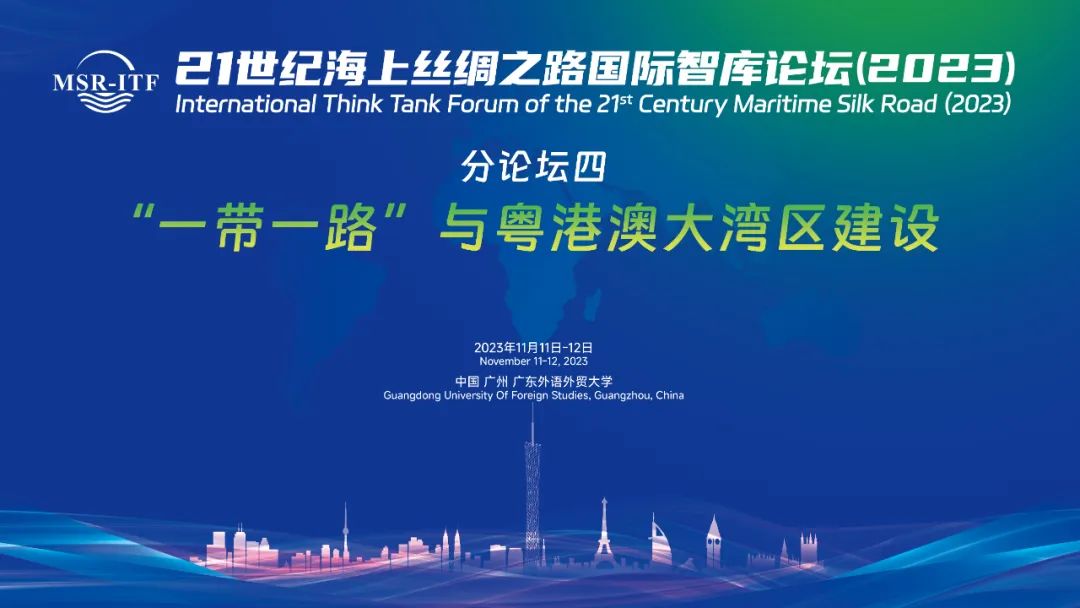 2023年11月11日下午,21世纪海上丝绸之路国际智库论坛(2023)的平行论坛四:“一带一路”与粤港澳大湾区建设研讨会(2023)在广东外语外贸大学白云山校区第一会议室举行,研讨会由广东外语外贸大学粤港澳大湾区研究院、大湾区建设与区域协调发展重点实验室、国际湾区研究院、粤商研究中心联合承办。中山大学自贸区综合研究院院长符正平教授、暨南大学产业经济研究院院长陶锋教授、华南师范大学人力资源中心主任谌新民教授、澳门科技大学可持续发展研究所所长刘成昆教授、华南农业产业发展研究中心主任万俊毅教授、广东省社会科学院学术委员梁育民研究员、广东外语外贸大学会计学院院长余鹏翼教授等等学者受邀参加本次研讨会并作主旨发言。