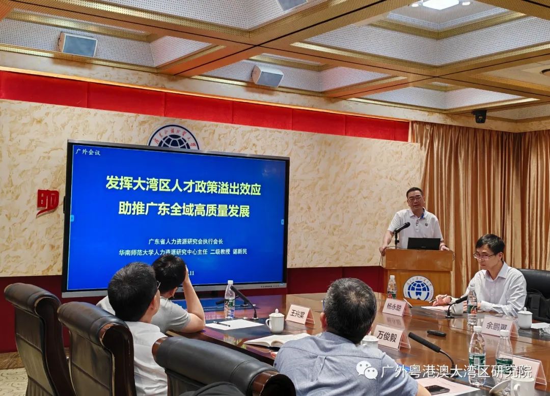 华南师范大学人力资源中心主任谌新民分享了粤港澳大湾区人才政策及其溢出效应的有关思考。他指出,如何处理公共服务和市场化的配置效率问题,发挥“双15”政策的溢出效应,实现自贸区和13个试点地市联动区的衔接,鼓励类优先产业目录的认定和拓展问题以及港澳(国际)人才的认定与拓展问题,是未来人才政策研究的重大突破方向。
