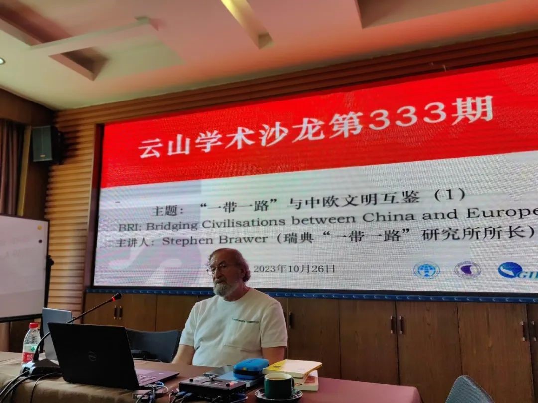 2023年10月26日下午,我院举办云山学术沙龙第333期,特邀瑞典“一带一路”研究所所长Stephen Brawer主讲“‘一带一路’与中欧文明互鉴”(BRI: Bridging Civilizations between China and Europe),沙龙由我院专职研究员刘彬博士主持。