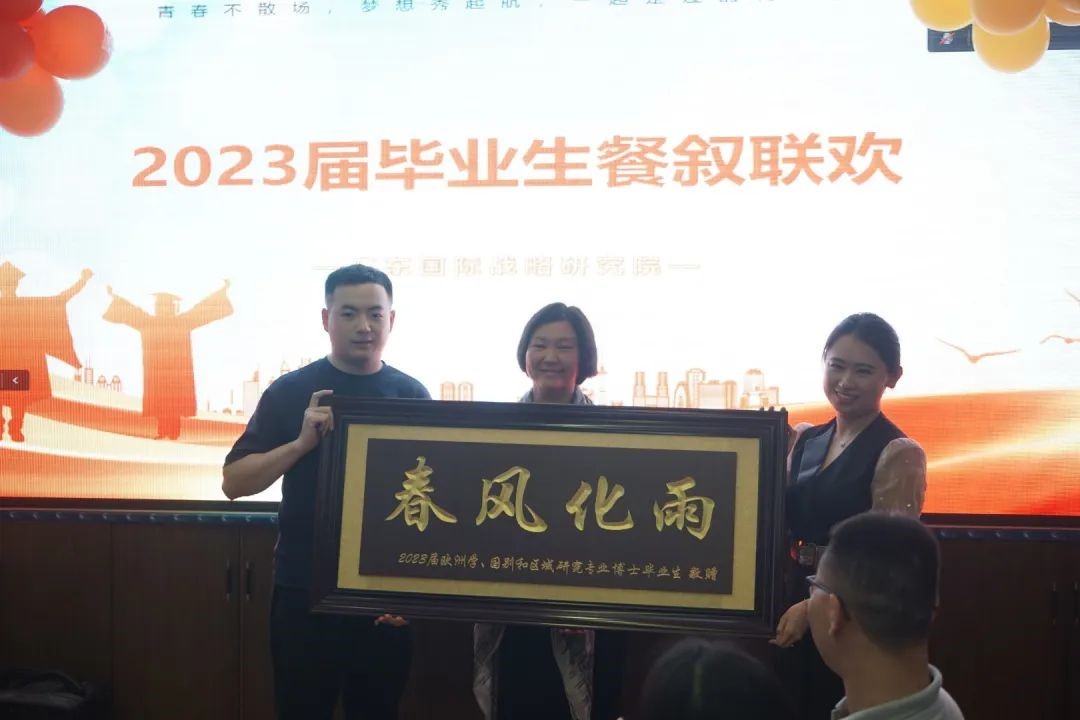 李青院长在联欢会上发表了热情洋溢的讲话,对毕业生们表示了衷心的祝贺。她希望毕业生们能够继续努力,不断进步,为自己的将来而奋斗。导师代表韩永辉教授、刘继森教授、梁立俊教授、程永林教授都纷纷发言,对毕业生们表达了亲切的关怀和祝福。他们回顾了与毕业生们共同度过的点点滴滴,赞扬了他们的成长和进步,寄语他们要坚持理想和信念,将目标和眼光放长,勇敢面对挑战和困难,不忘初心和使命。还向毕业生们传授了一些人生的道理和经验,希望毕业生们能够在未来的道路上走得更远更好。博士毕业生代表刘茹楠、硕士毕业生代表何铤鋆和本科生代表代家欢发表了感恩的讲话,并向学院赠送了特别的礼物,一幅春风化雨牌匾,感谢院长和各位导师的谆谆教导;一副桃李满天下的中国地图,寓意着教授的学生来自五湖四海,他们将在各个领域发挥自己的才能和价值。