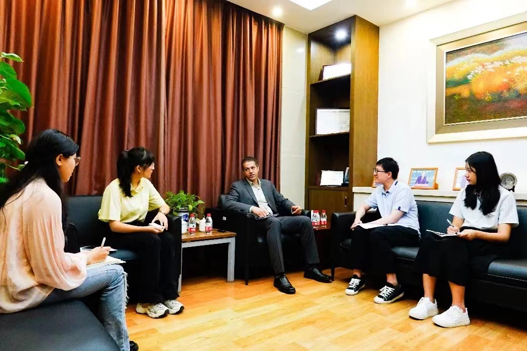 5月17日上午,瑞典“一带一路”研究院副院长侯赛因·阿斯卡里(Hussein Askary)应邀来访我院,接受了我院学生的访谈。访谈内容围绕“一带一路”倡议十周年和“中欧关系”等主题进行。