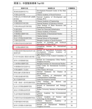 近日,浙江大学信息资源分析与应用研究中心发布了《全球智库影响力评价报告2020》(以下简称《智库报告》),广东省共有2家智库入选,其中广东国际战略研究院在全球智库榜单TOP100中排名42,在中国智库榜单TOP100中排名14。在全球智库影响力9个分领域榜单中,4个榜单进入TOP20: 全球政府治理领域智库TOP20排名5,全球综合类智库TOP20排名13,全球国家安全领域智库TOP20与社会政策领域TOP20均排名17。
