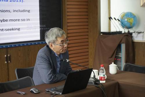 唐世平教授首先从个人经历和名家观点出发,为大家介绍并评述了经济发展方面的历史文献,并对IFED(经济发展的制度基础)进行了简单的介绍。其中,他着重介绍了一个制度视角下的经济发展模型,分析出相关公式,供在场师生讨论。在分析中,他又以西欧发展为例,阐述了国家竞争与经济增长的正相关性。