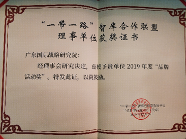 论坛获中联部“一带一路”智库合作联盟2019年度“品牌活动奖”(全国仅10项)
