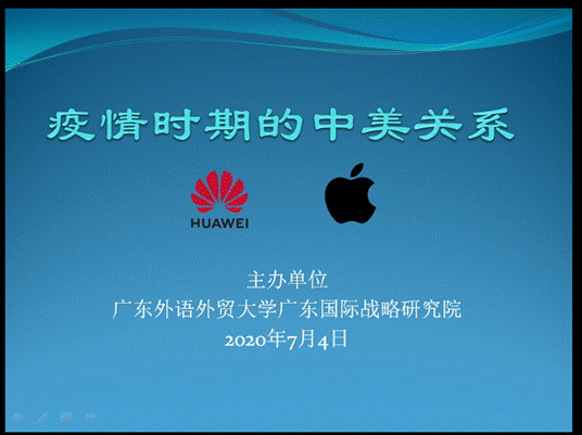 2020年7月4日上午,由广东国际战略研究院主办的“疫情期间的中美关系”研讨会通过腾讯会议在线举行。中国社会科学院美国研究所副所长袁征研究员、清华大学中美关系研究中心主任陈琪教授、国际关系学院校长助理达巍教授、广东外语外贸大学国际关系学院院长周方银教授、中国社会科学院世界经济与政治研究所国际政治理论研究室主任徐进研究员、华南理工大学公共政策研究院执行院长张锋教授、中国人民大学国际关系学院刁大明副教授受邀作主题发言。本次研讨会由广东国际战略研究院《战略决策研究》执行主编陈寒溪教授主持。