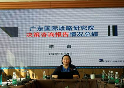 会议第二阶段由李青教授做广东国际战略研究院决策咨询报告情况总结,她总结了广东国际战略研究院十年来的决策咨询报告发展情况,梳理了几大主题,并对决策咨询报告进行分类,对于目前研究院报告存在的一些问题进行分析,并给出相应的解决措施和方案,为2020年的决策咨询报告指明方向。最后,李青教授布置2020年工作计划,共分为三大类和十大工作计划,明确工作方向,提升工作效率。