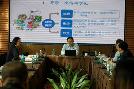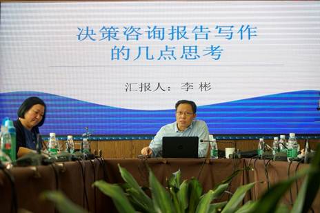 会议的第一阶段由李彬副主任做关于决策咨询报告写作的主题演讲,他表示,目前政府决策日益科学化,更需要智库与政府协同,提供更优质的决策咨询报告。李彬副主任具体围绕什么是决策咨询报告,怎样写好一篇决策咨询报告进行解读和说明,并用六个具体案例分析决策咨询报告的选题、内容、文字要求,阐述了决策咨询报告的特点与写作方法。与会人员与李彬副主任就政策试点和调研等相关问题进行了深入的讨论。