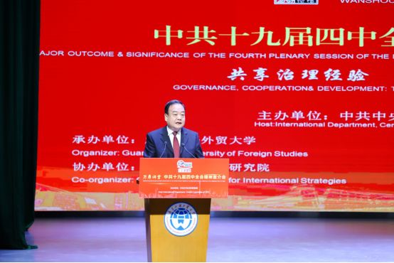 11月10日,由中共中央对外联络部主办、广东外语外贸大学承办、广东国际战略研究院协办的万寿讲堂在广东外语外贸大学举行。本次讲堂主题为“共享治理经验,共谋合作发展”,是万寿讲堂第一场针对外国人宣讲党的十九届四中全会精神的宣介会。来自俄罗斯、土耳其、南非、肯尼亚、埃塞俄比亚、等28个国家代表和21国驻穗领馆官员以及在粤外国学者、留学生等500余名中外代表参加了宣介会并围绕活动主题进行了深入交流。