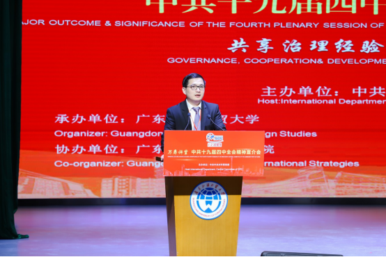 中共中央党校党史部新时期改革开放史教研室主任沈传亮以及中共广东省委党校行政学教研部副主任陈晓运分别就“十九届四中全会内容解读”、“广东介绍地方治理经验”发表主旨演讲。