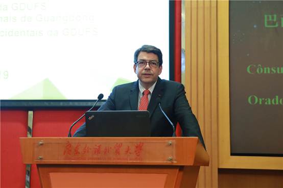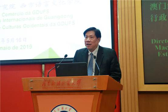 2019年5月16日上午,由商学院、广东国际战略研究院、西方学院文化学院主办的“首部《葡语国家黄皮书》发布会暨‘葡韵湾区2019’学术研讨会”在我校召开。广东外语外贸大学党委书记隋广军、巴西驻广州总领事馆总领事佩德罗·特拉等专家学者参会。发布会和研讨会由广东外语外贸大学副校长焦方太主持。