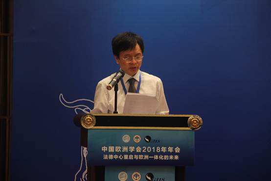 程卫东代表中国欧洲学会会长周弘宣读致辞。周弘在致辞中指出,当今世界正在发生紧迫、延续和深刻的变化,甚至可能是结构性、颠覆性的变化,我们行业职责就是要紧紧盯住欧洲发展的变化,努力去理解变化,进而掌控变化,我们对于欧洲一体化有几点共识:一、欧洲一体化与经济全球化是顺势而为的,欧盟是维持全球化发展方向的一个力量;二、欧洲一体化是有保护主义倾向的,保护的程度取决于内部力量以及外部的压力,这关系到欧洲与中国的关系,也关系到中国发展外部条件;三、欧洲一体化对世界格局会产生影响,而不是无足轻重的,对于中国发展是利益忧关的,不是无关紧要的。