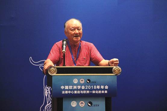 上海社会科学院欧洲问题研究中心名誉主任伍贻康做了主题发言,他指出,欧洲一体化经受了有史以来最严重的多重危机叠加的挑战,但是多元一体是欧洲一体化的灵魂,欧洲联盟这个框架必然会坚持下去。欧洲通过深刻的反思和变革的调整,在既有的框架下浴火重生。