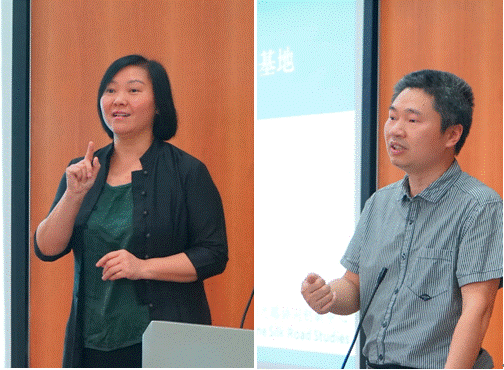 李青教授(左)介绍课题立项情况、周方银教授(右)分享调查研究报告撰写心得