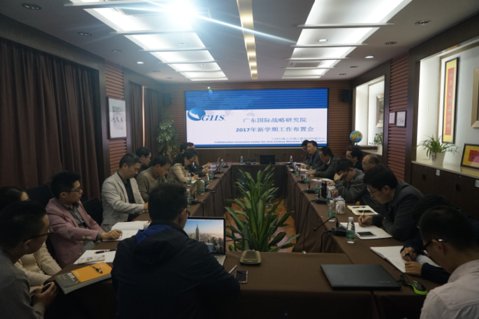 3月3日下午,广东国际战略研究院召开2017年新学期工作布置会,全体人员参加,会议由刘继森教授主持,对研究院新一学期的工作做了布置和说明。