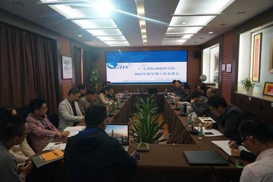 3月3日下午,广东国际战略研究院召开2017年新学期工作布置会,全体人员参加,会议由刘继森教授主持,对研究院新一学期的工作做了布置和说明。