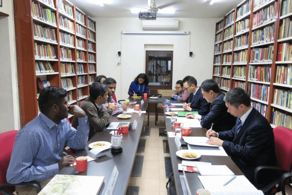 11月24日下午,调研团来到印度中国研究所,与印度的中国研究专家座谈。中国研究所是印中孟缅经济走廊的主要发起单位之一。双方就经济走廊建设中存在的障碍和风险、印度对于经济走廊建设的担忧和建议、印度货币改革的影响等问题进行了深入研讨。