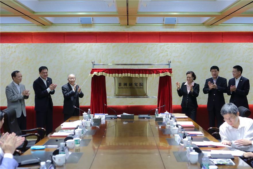 11月21日上午,原国务委员,21世纪海上丝绸之路协同创新中心、我院顾问委员会名誉主席戴秉国前来我院,围绕当前国际形势与学者进行交流,指导我院新型智库建设,并为非洲研究院揭牌。