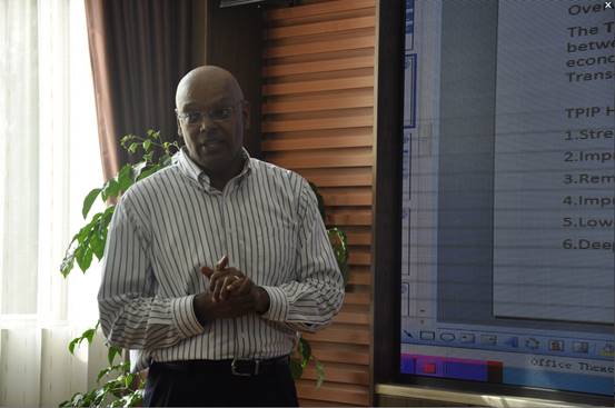 Wilkerson博士认为Panama, Columbia, South Korea Trade PromotionAuthorities、Transatlantic Trade and InvestmentPartnership (TTIP)、Trans Pacific Partnership (TPP)是美国5-10年的新经济增长点。Wilkerson博士还与参会人员交流了有关TPP的研究与想法,现场讨论气氛热烈。