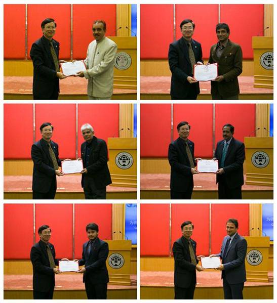 随后,各国政党干部代表、我校相关研究学者相继发言,表达了对“海上丝绸之路”建设的希冀与诚恳建议。何传添作总结发言。他高度赞赏本次座谈会成功举行,提到亚洲的和平与发展要靠区内各国积极交流合作,而现阶段特别要加强经济和文化的合作,实现平等共赢。中国提出来的“丝绸之路”构想能加强中国与南亚各国联系和合作,推进南亚区域的稳定和发展,缩小区域之间的差距;同时构想还面临着许多困难和挑战,需要沿线各国的共同付出。最后,何传添为研修班代表颁发结业证书。