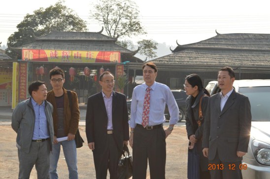 12月9日上午, 由广东国际战略研究院刘继森副秘书长带队,广东外语外贸大学云山讲座教授、澳大利亚纽卡斯尔大学教授Stephen Nicholas、国际经贸学院教授肖奎喜、广东国际战略研究院秘书闫晓珊等一行五人考察了筹建中的中意产业园。云浮市外经贸局副局长陈永才接待了考察组,并带领考察组实地考察了规划中的产业园区,对未来园区规划设想进行了详细的说明。
