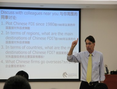 12月5日下午, 广外大云山学者、澳大利亚纽卡斯尔大学前副校长尼古拉斯教授应邀在北校区教师发展中心多功能会议室面向全体广外师生做了题目为“中国对外直接投资:理论与实践”的讲座。广外大人事处方迎生处长,MIB中心主任杨励教授,全体2013级MIB学生出席讲座,本次讲座有MIB中心刘琳老师主持。