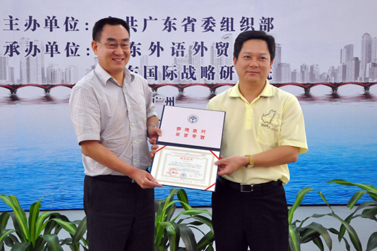 顾也力在致辞中表示,本次研讨班主讲专家结合中国和广东经济发展,把美国、德国、日本、韩国、印度等国家成功的产业转型升级经验进行了系统讲解,学员们也非常珍惜本次的学习机会,克服各种困难,静下心来,专心听课,勤于思考,与专家互动,所提问题切中本地经济发展要害,意义重大。“一段广外路,一生广外情”。在研讨班结束之际,顾也力希望各位学员在短短的五天时间里可以结下伴随一生的同学情谊,从此以后,可以自豪地说:“我们是广外的校友”。在未来的工作和生活中,多多关注广外的发展,“有时间常回家看看。”
