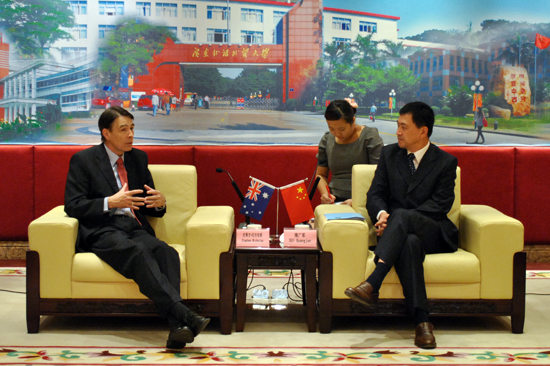 9月27日,澳大利亚纽卡斯尔大学副校长、澳大利亚社会科学院院士史蒂文· 尼古拉斯(Stephen. Nicholas)一行首次来访我校,我校党委书记隋广军在北校区贵宾厅会见了史蒂文· 尼古拉斯一行,我校副校长方凡泉、国际交流处处长焦方太、国际学院院长陈林汉、国际战略研究院秘书长李青等陪同会见。双方就科研合作、国际商务硕士等方面的合作展开了讨论。