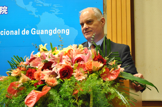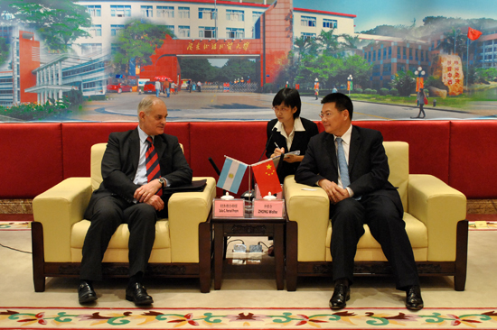 Julio C Ferrari Freyre谈到:“中阿建交近些年有很大的发展,与在其他国家的外交活动相比,阿根廷在中国的外交活动是办得相当好的。虽然来广州时间不长,但对广外我却是早有耳闻。在过去的六个月里面,我们的合作取得了较大的成就,这次来访广外就是为了加强交流、促进今后双方的合作。”