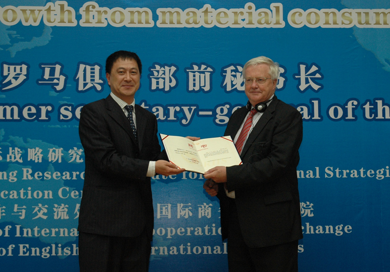6月30日,罗马俱乐部前秘书长马丁•李访问我校,并在北校区多功能报告厅作了题为“转变经济增长模式:从物耗型到注重生命质量”的演讲。该讲座是广东国际战略研究院云山大讲坛的第三讲。广东省发改委副主任鲁修禄,我校党委书记隋广军以及广东省外经贸厅、广东省政府发展研究中心、佛山市发改局、佛山市南海区金融办官的代表,企业代表,我校师生代表出席了讲座。讲座由我校MBA中心主任孟庆轩主持。