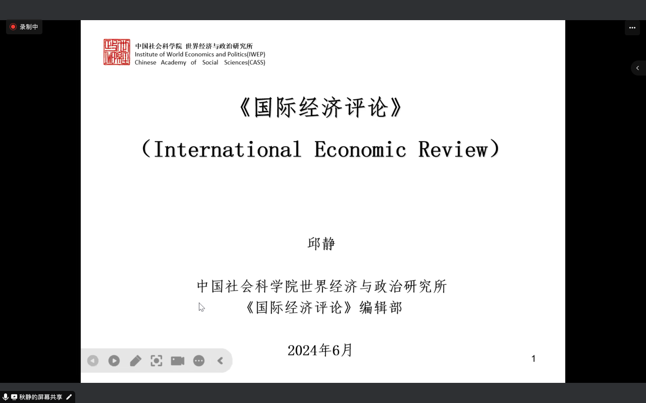 《国际经济评论》编辑部邱静老师介绍了期刊的基本情况以及关注的话题,并提出了一些投稿的注意事项。她表示文章的内容务必要明确阐述研究贡献,有鲜明的观点,并进行有效论证。