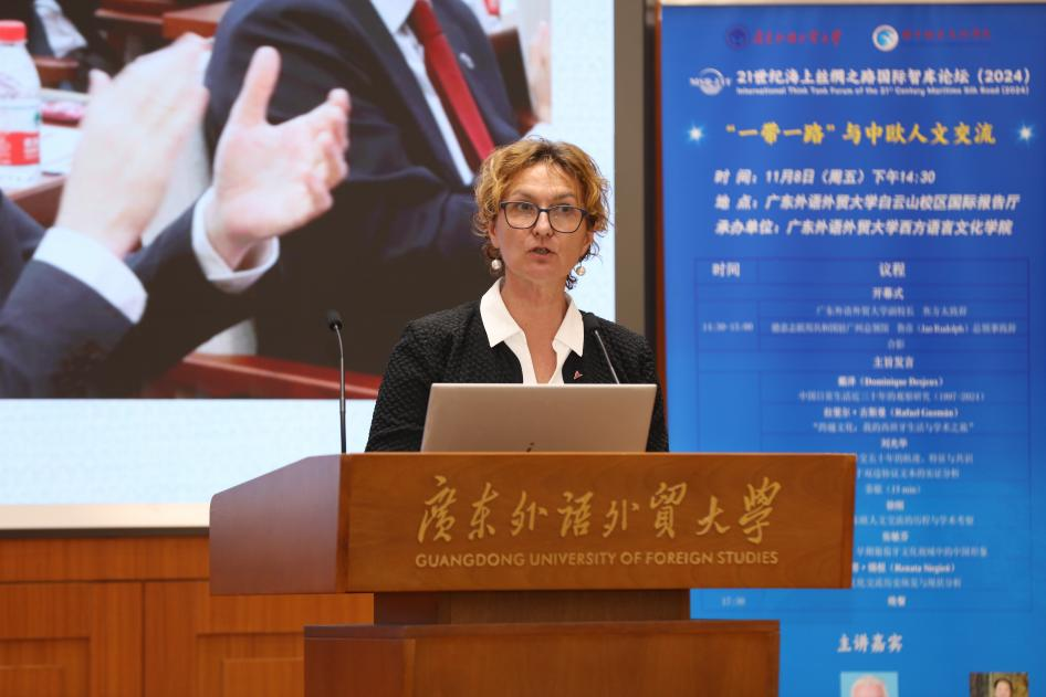 广东外语外贸大学波兰语系外籍教师雷娜塔·锡根作了题为《中波文化交流历史纵览与现状分析》的主旨发言。发言聚焦于中波两国间丰富的文化关系,回顾了两国文化交流的历史渊源,包括17世纪波兰旅行家和学者们对中国文化的探索与传播。此外,接着雷娜塔·锡根老师分析了中波两国文化合作的多种形式,指出近年来中国年轻一代对波兰文化和历史的兴趣呈上升趋势,各类语言、文学、艺术交流和合作项目显著促进了两国间的相互理解。