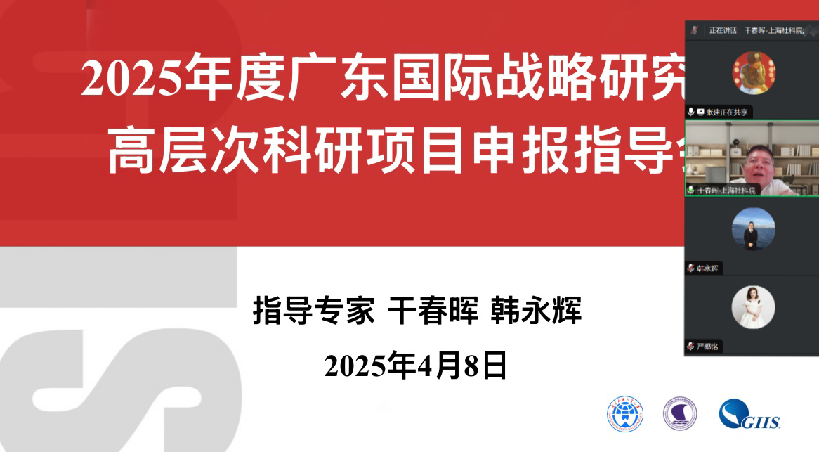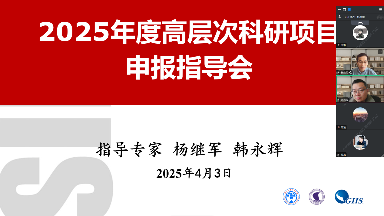 目前,国家社科基金项目申报已经进入最后冲刺阶段,为助力老师提高项目申报立项率,研究院高度重视高层次科研项目申报指导组织工作。4月3日和4月8日下午,广东国际战略研究院通过腾讯会议连续举办两场2025年度高层次项目申报指导会,分别邀请南京财经大学杨继军教授和上海社会科学院常务副院长干春晖教授针对国家社科项目申报进行专题指导。我院青年教师马晶、严椰铭、张建、刘琳、陈兆凌、刘洋、张帆等参加了指导会,会议由我院副院长韩永辉教授主持。