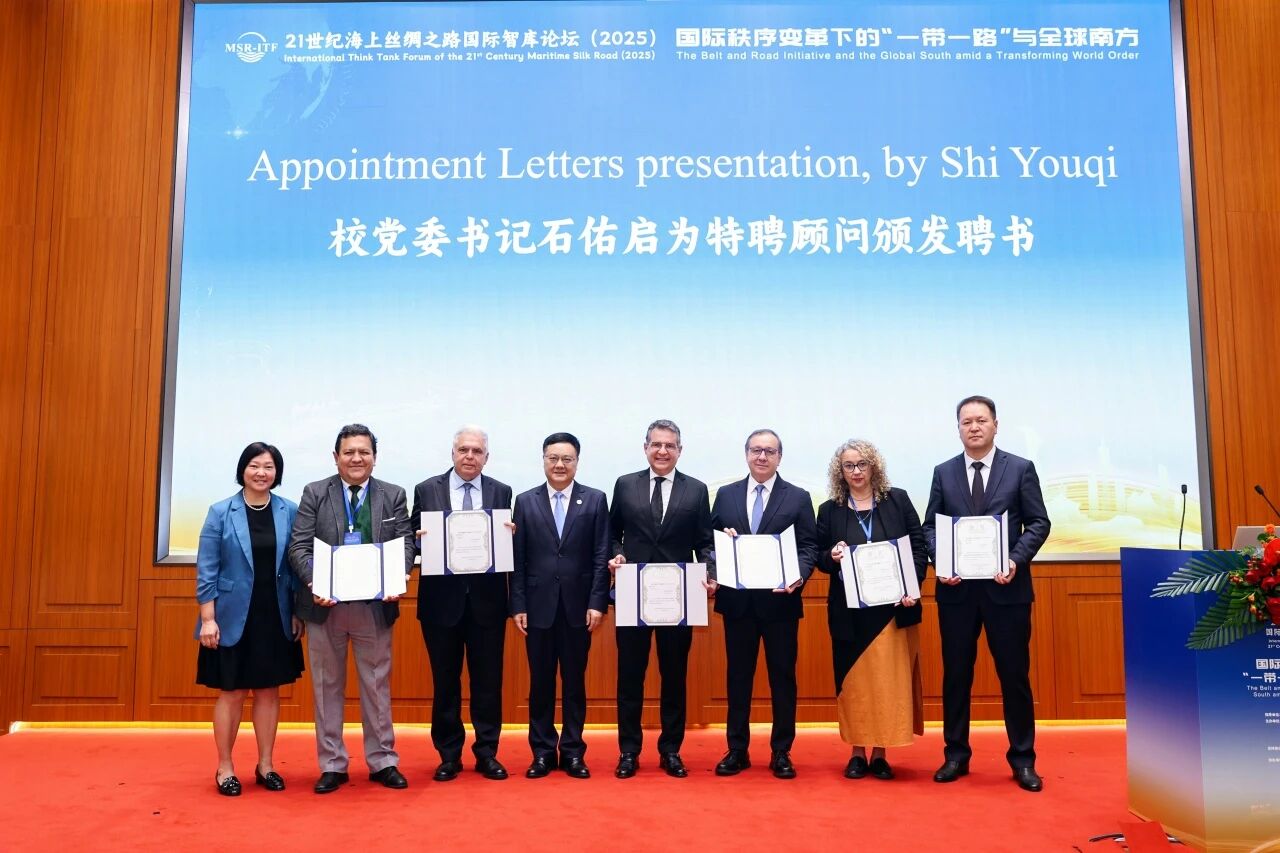 2025年9月14日,第十届21世纪海上丝绸之路国际智库论坛在广东外语外贸大学举行。论坛由中共中央对外联络部当代世界研究中心、广东外语外贸大学、广东国际战略研究院、广东公共外交协会、广东省社会科学界联合会共同主办,并得到中共广东省委外事工作委员会办公室以及教育部省部共建21世纪海上丝绸之路协同创新中心等单位的大力支持。