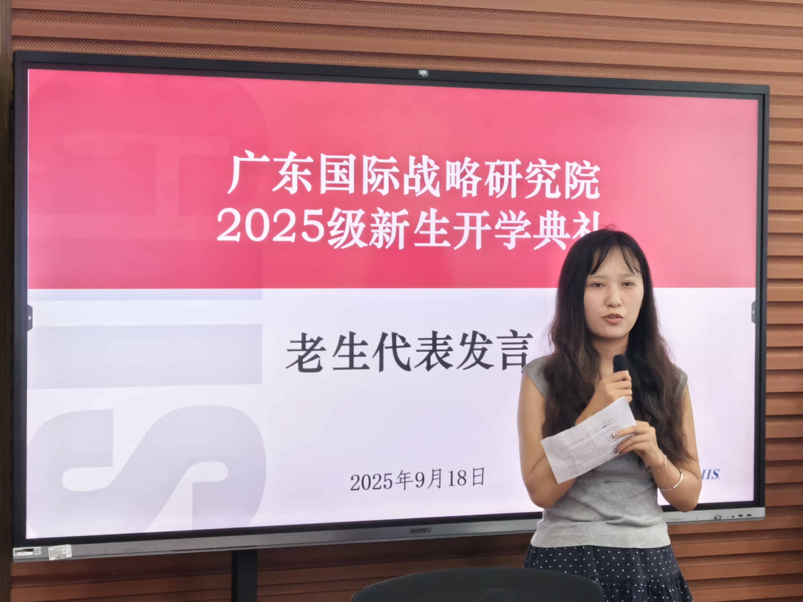 9月18日,广东国际战略研究院举行2025级新生开学典礼。我院院长李青教授、副院长钟祖昌教授、副院长韩永辉教授、副研究员刘彬、科研秘书杨宏、教务秘书何晗靓,行政秘书兼辅导员张嘉诺以及2025级全体博士、硕士、国际组织创新班本科生出席本次会议。会议由钟祖昌教授主持。
