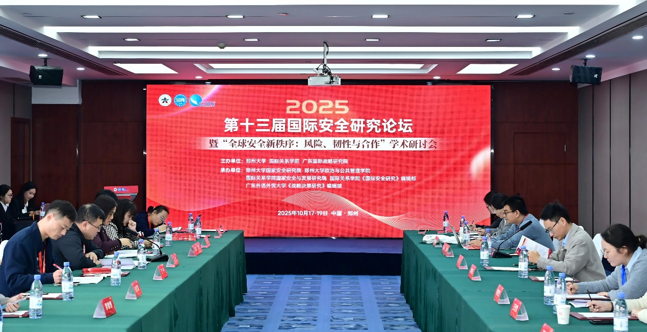 2025年10月17-19日,由郑州大学、国际关系学院、广东国际战略研究院联合主办,郑州大学国家安全研究院、郑州大学政治与公共管理学院、国际关系学院国家安全与发展研究院、国际关系学院《国际安全研究》编辑部、广东外语外贸大学《战略决策研究》编辑部共同承办的“第十三届国际安全研究论坛暨‘全球安全新秩序:风险、韧性与合作’学术研讨会”在河南郑州成功举办。来自全国高校、科研机构、期刊编辑部及相关实务部门近二百名专家学者参加论坛。