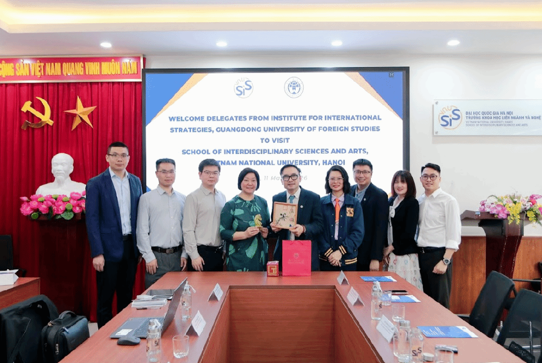 3月11日,广东国际战略研究院一行与越南河内国家大学举行工作座谈。会议由交叉与艺术学院副校长阮越魁主持,研究事务与发展合作部主任武堂伦、阮文明、阮秋香等参加会谈。双方就推进学生交流项目、加强教师互访机制以及共同举办国际学术会议等具体事宜进行了深入探讨,务实推动双方在教育和科研领域的深度合作。