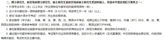 3、外语水平较高,英语专业研究生须通过专业八级考试,非英语专业须通过大学英语六级考试。派出时,外语水平应符合2022年国家公派留学选拔简章中各类别留学身份的外语水平要求(https://www.csc.edu.cn/article/1855)。