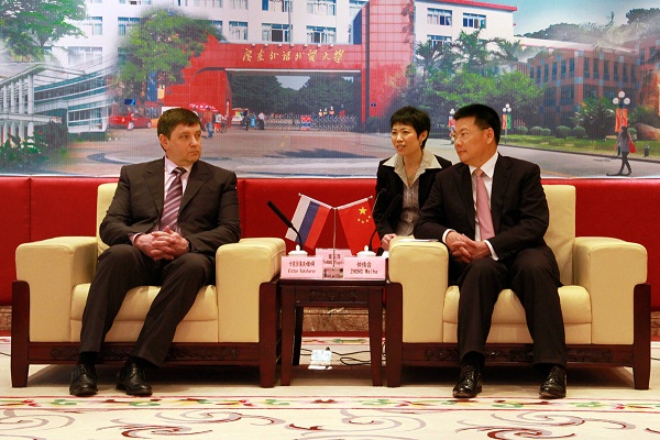 会谈中,仲伟合对来宾表示热烈的欢迎,并介绍了我校的历史、发展以及我校的人才培养模式。他指出,教育国际化是我校的重要战略,而广外又是我国国际化战略人才的培养基地。同时他表示,很荣幸能与位于叶卡捷琳堡市(该市为广州市友好城市)的乌拉尔联邦大学展开校际合作,两校目前已经有教师、学生互换项目,他希望今后两校能有更多的学术交流机会,在合作上能取得更加丰硕的成果。