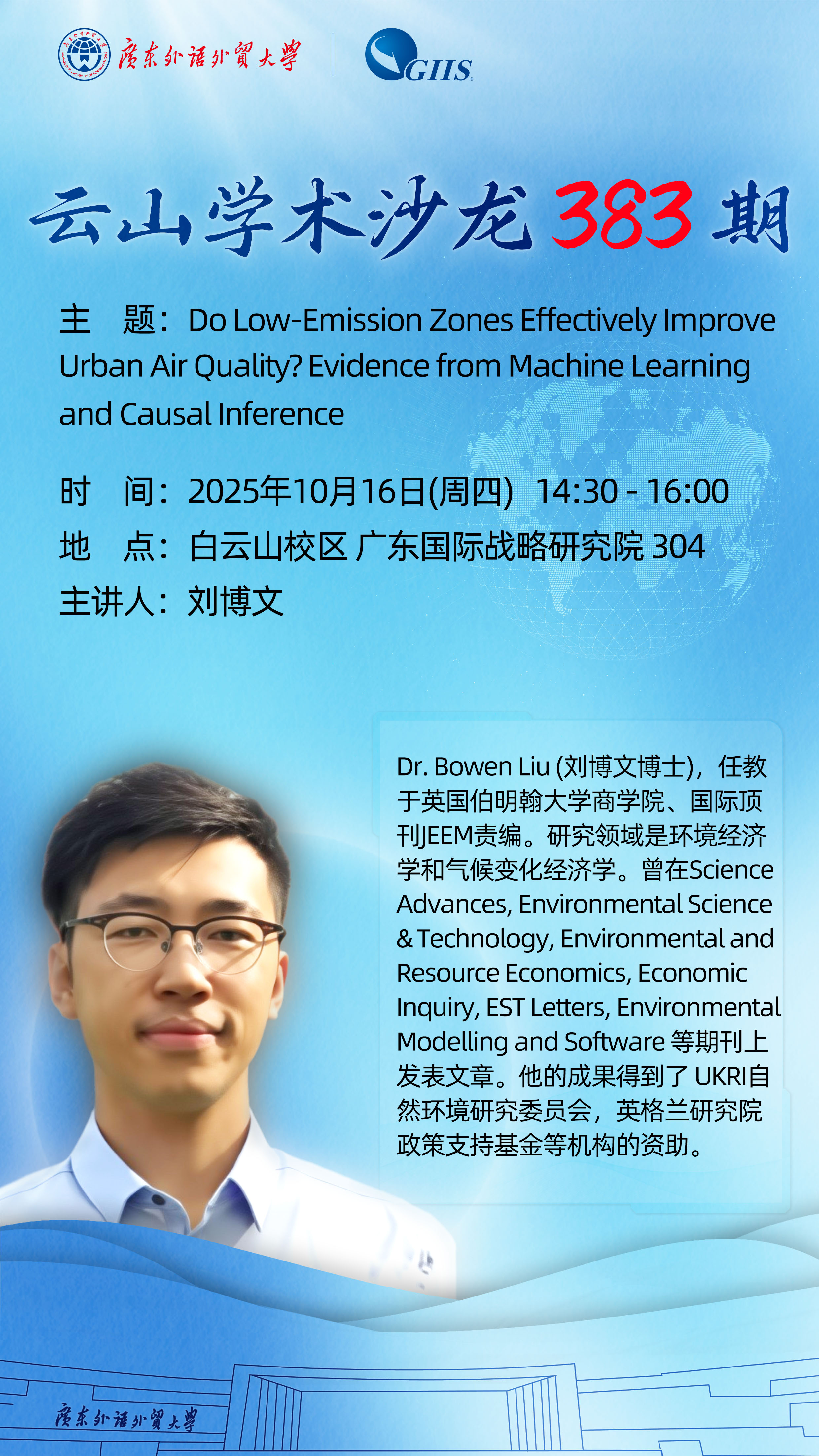 【383期 预告】刘博文: Do Low-Emission Zones Effectively ImproveUrban Air Quality? Evidence from Machine Learning and Causal Inference