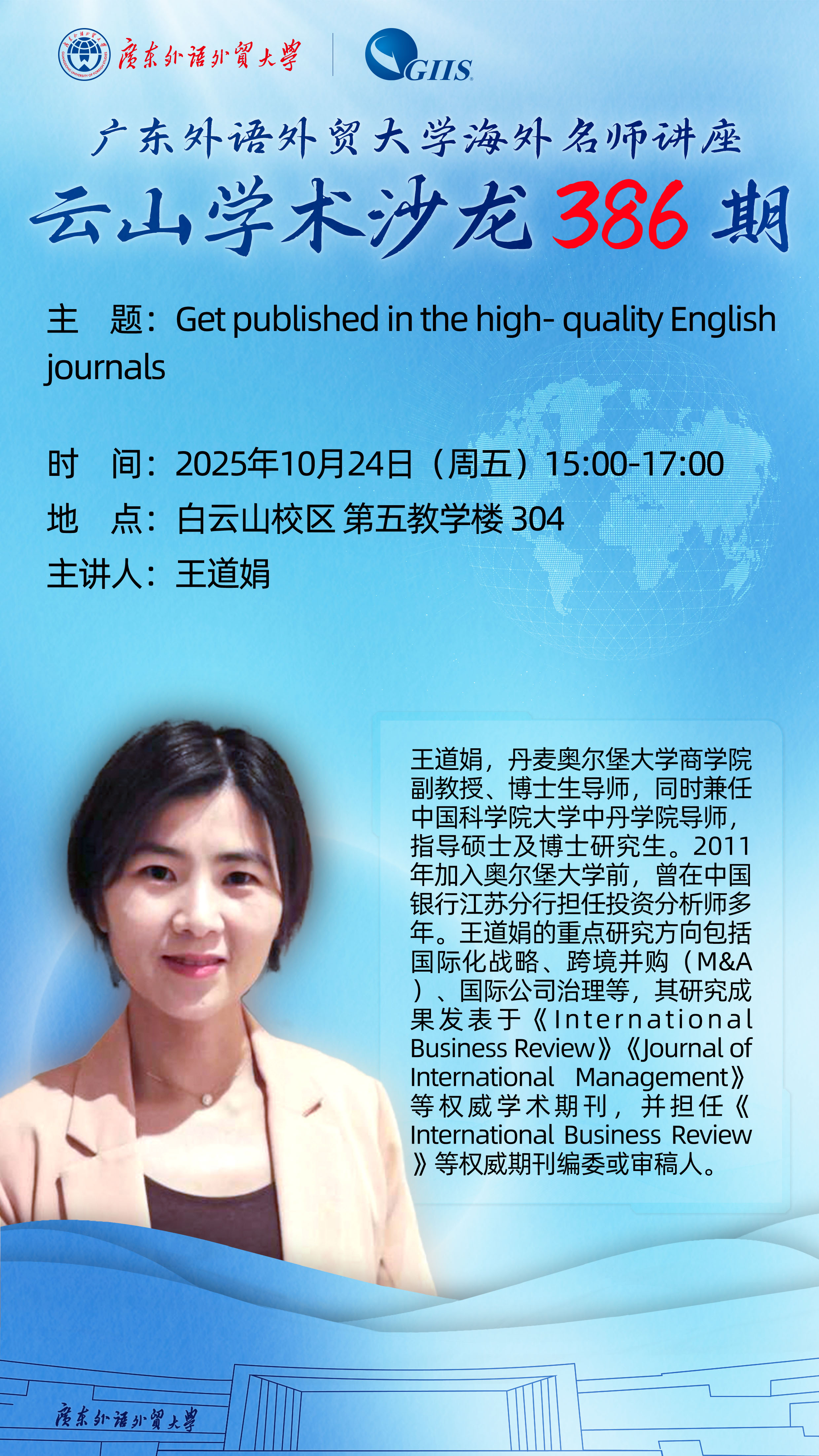 【386期 预告】王道娟:Get published in the high- quality Englishjournals