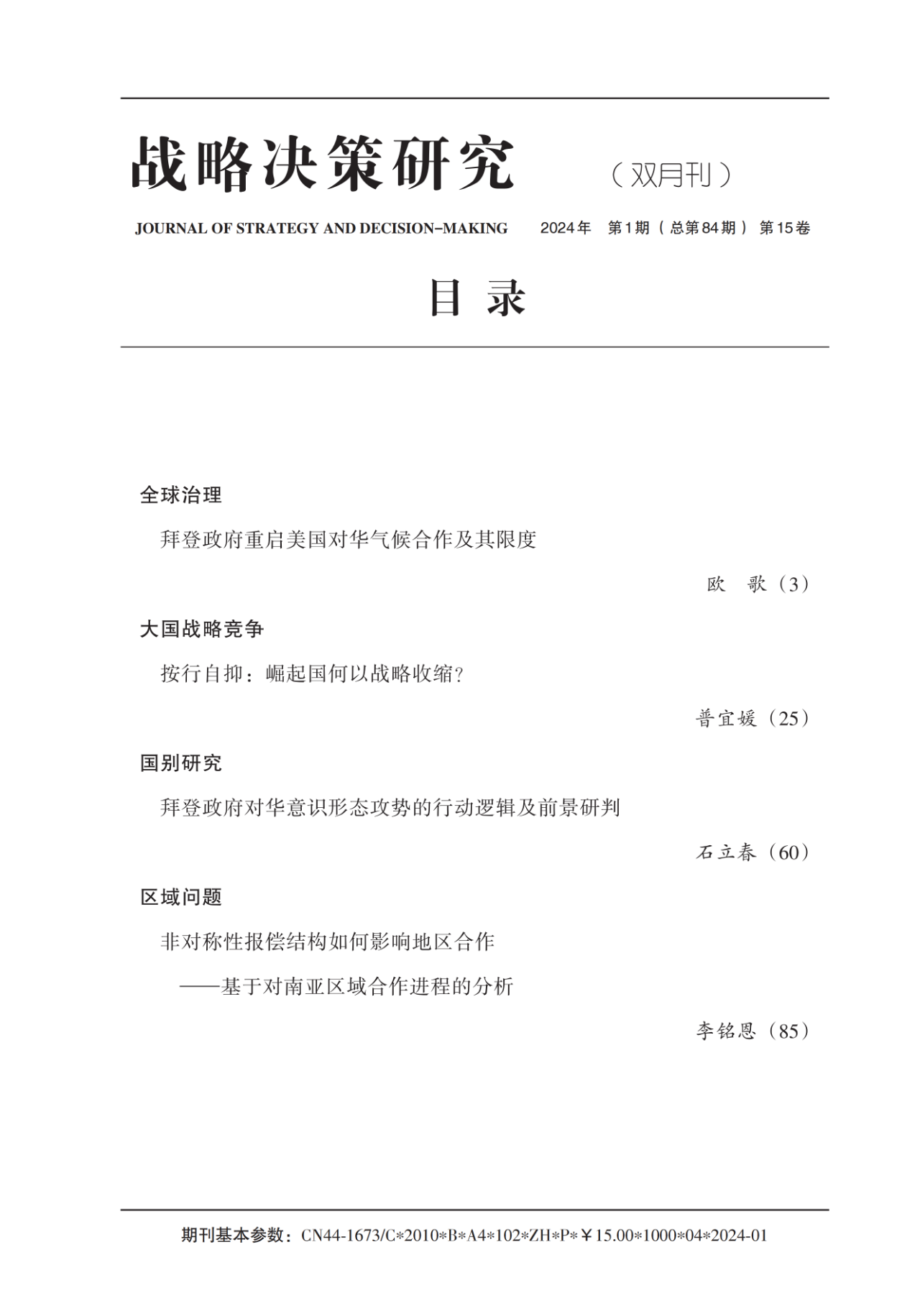 关键词:气候治理;拜登政府;中美合作;战略竞争