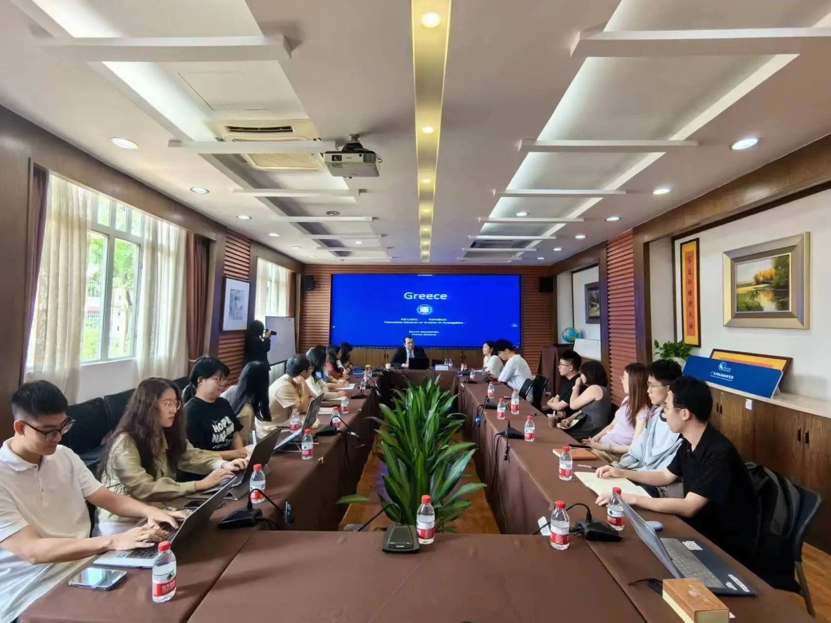 斯曼达里蒂斯总领事对希腊的历史背景进行了深刻概述,强调了希腊对民主价值观和文化贡献的深远影响,如奥林匹克和橄榄油。他同时提及了希腊面临的现代挑战,包括崎岖地形对基础设施发展的影响。斯曼达里蒂斯总领事还深入探讨了希腊加入欧盟的历程,以及融入多元化经济和政治实体的复杂性和细微差别。在讨论当代问题时,他谈到了希腊对数字时代的适应,特别是公共服务的数字化,并分析了欧盟对金融和移民危机等危机的回应,以及支持成员国稳定和韧性的努力。